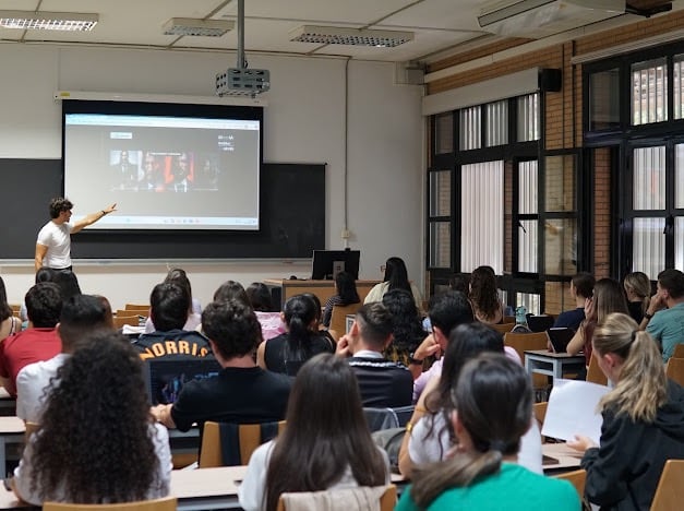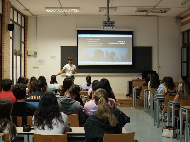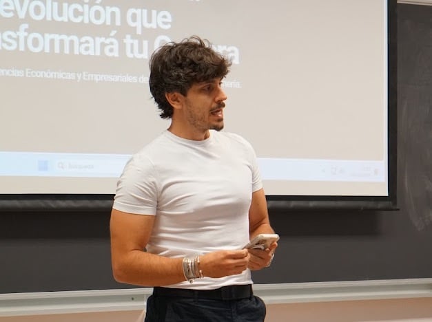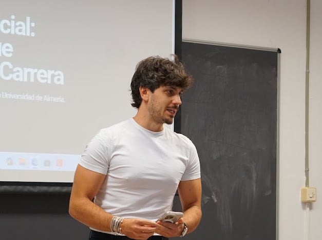 En esta visita, Jose Saldaña, Consultor de IA y Fundador de IA en AlmerIA, ofreció una charla práctica sobre cómo la Inteligencia Artificial va a revolucionar el mercado laboral con una visión muy práctica a los alumnos de ADE de la Universidad de Almería. A través de casos reales, se mostraron herramientas y estrategias accesibles para aplicar IA en el día a día, así como poder diferenciarse de sus competidores a la hora de su salida al mercado laboral.